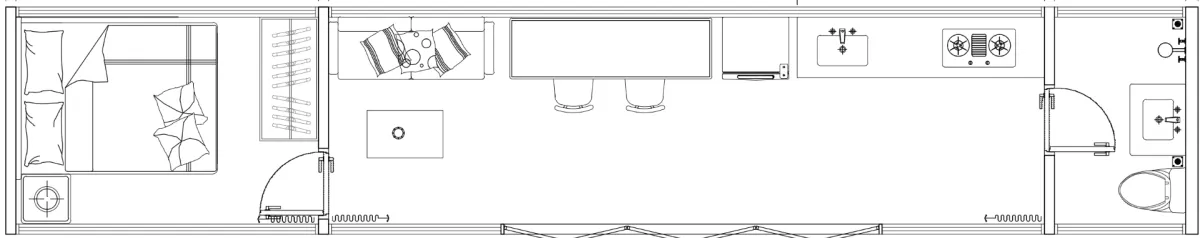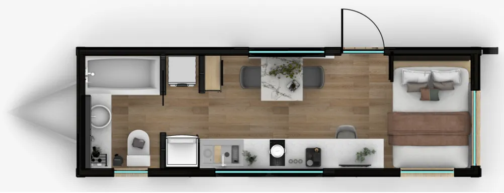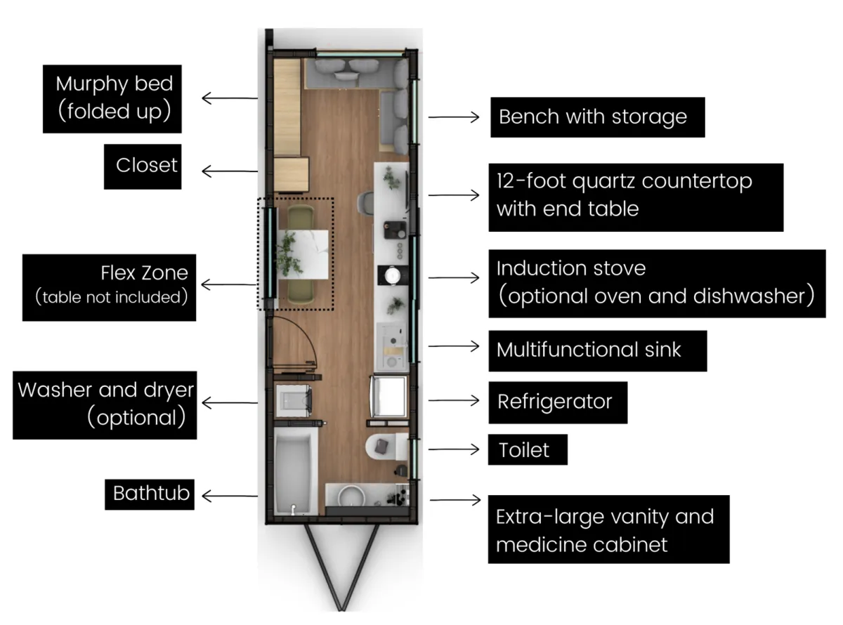 Large windows. Quartz countertops. Custom cabinetry. Tile backsplash and bathroom. Bathtub. Murphy bed. Brand-name fixtures and appliances.
